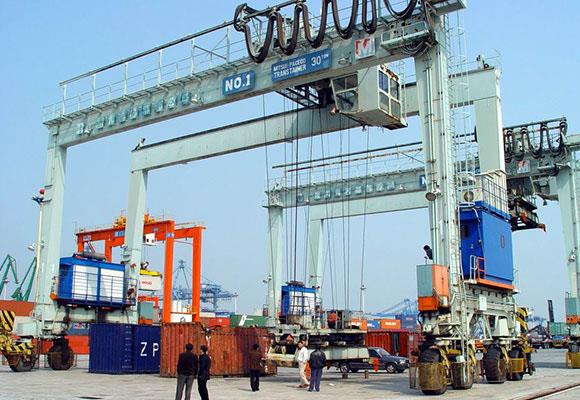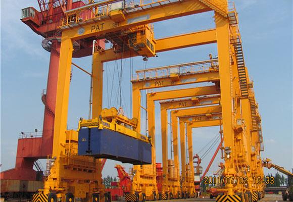 2. جرثقیل گودال کانتینر لاستیکی Weihua مجهز به پخش کننده های تخصصی برای بلند کردن اندازه های استاندارد 20GP، 40GP، 45HQ و مخازن ذخیره سازی هیدرولیک است.